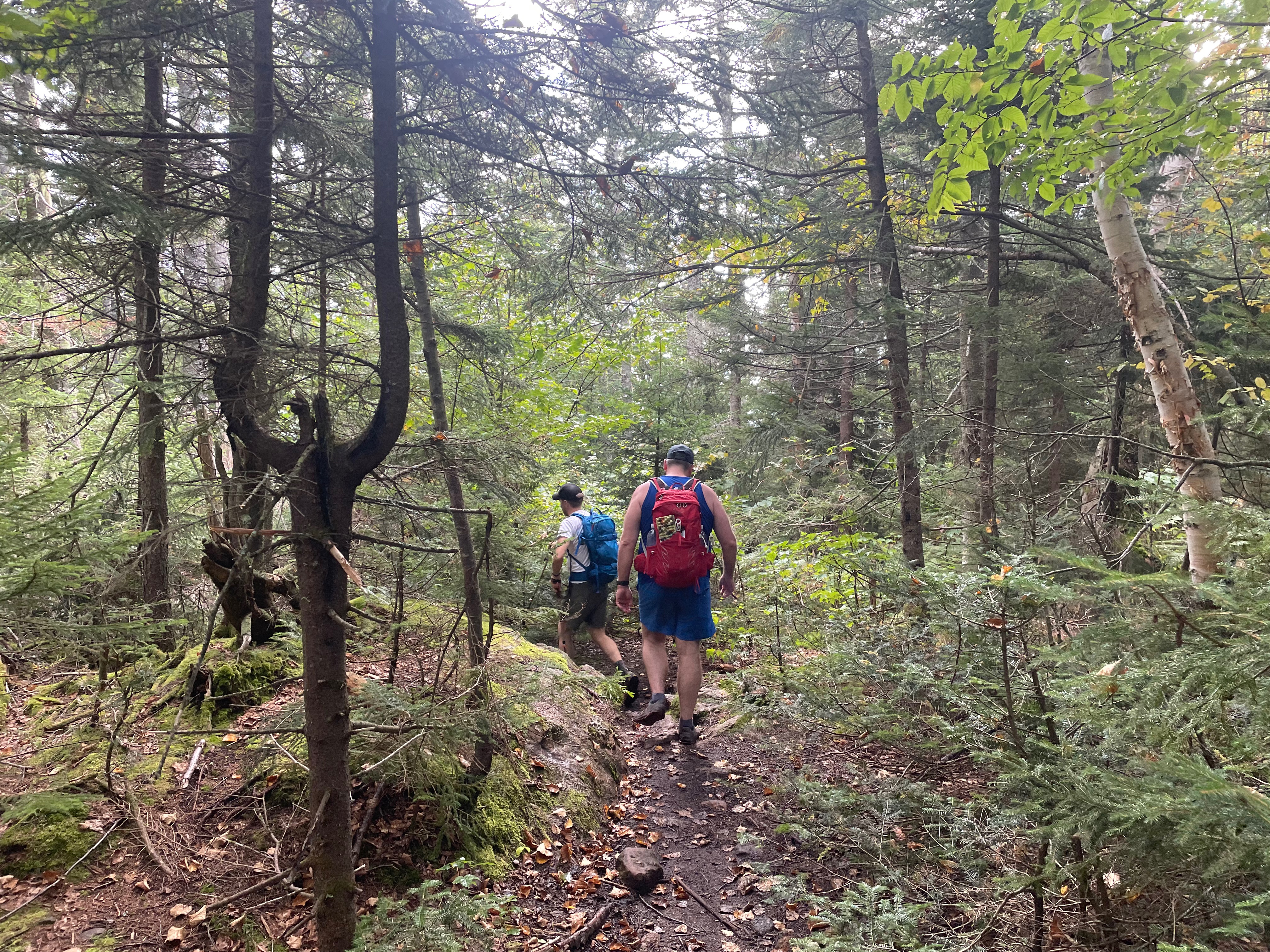 Two trails depart at the trailhead, the Caribou Trail, and the Mud Brook Trail — which make up the loop hike. For our hike, we started on the Caribou Trail, which travels 3 miles, following Morrison Brook much of the way, to the notch between Gammon Mountain and Caribou Mountain. From there, the Caribou Trail continues to the north down to Bog Road, but we turned right (south) onto the Mud Brook Trail and began ascending Caribou Mountain.